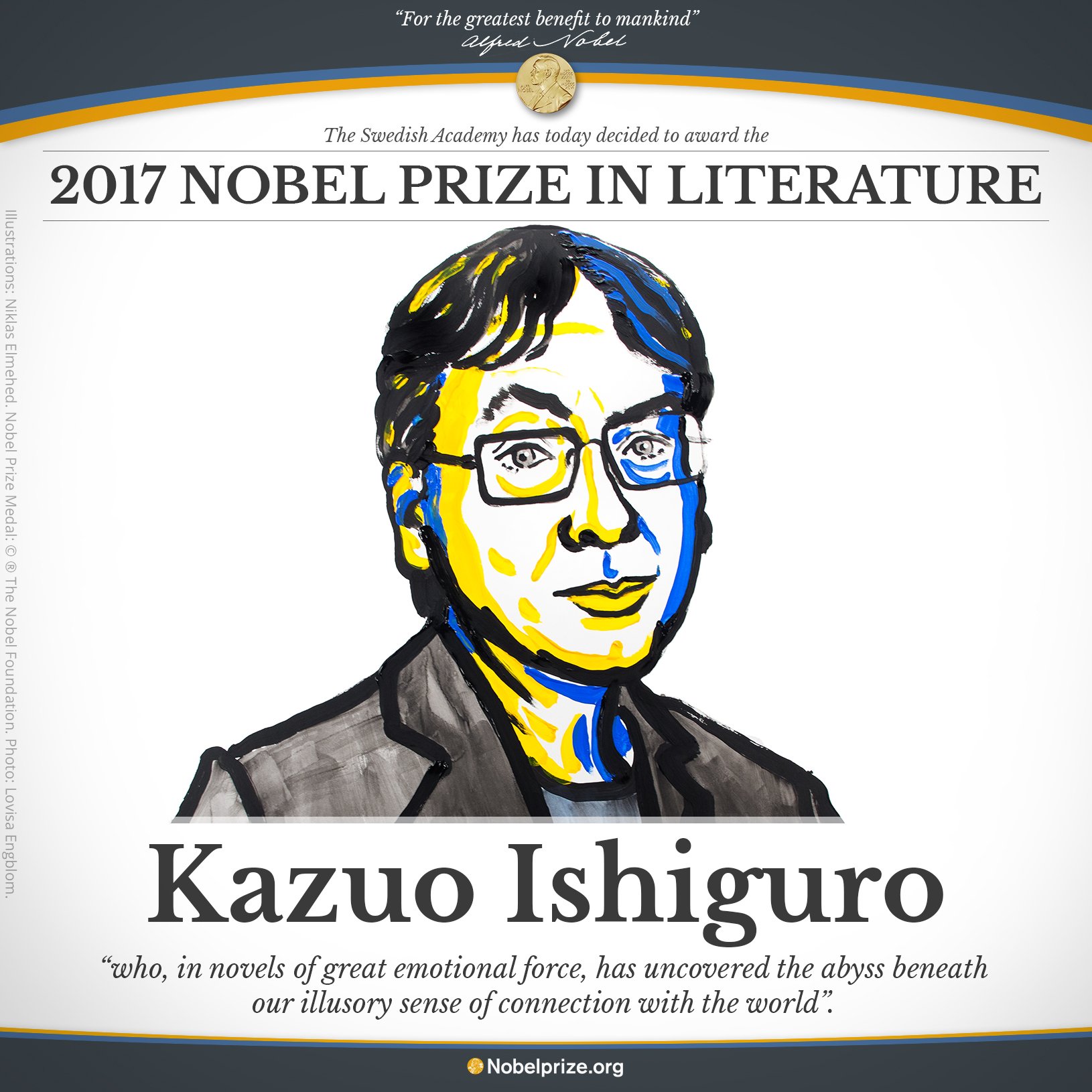 Ісігуро отримав премію як письменник, "який в романах великої емоційної сили розкрив прірву під нашим ілюзорним почуттям зв'язку зі світом".